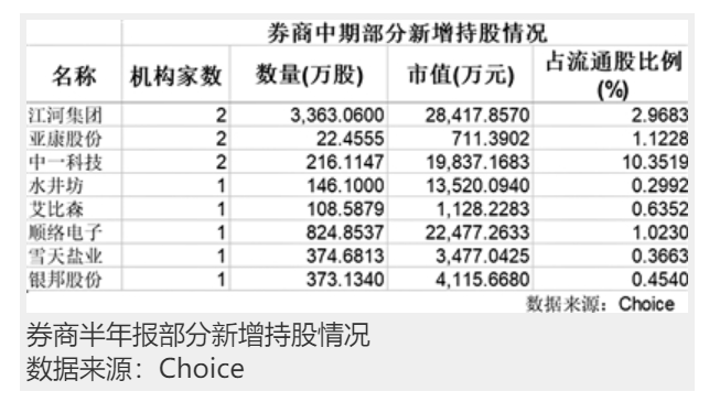 券商重仓股浮出水面 中信、中金新进多公司前十大流通股股东